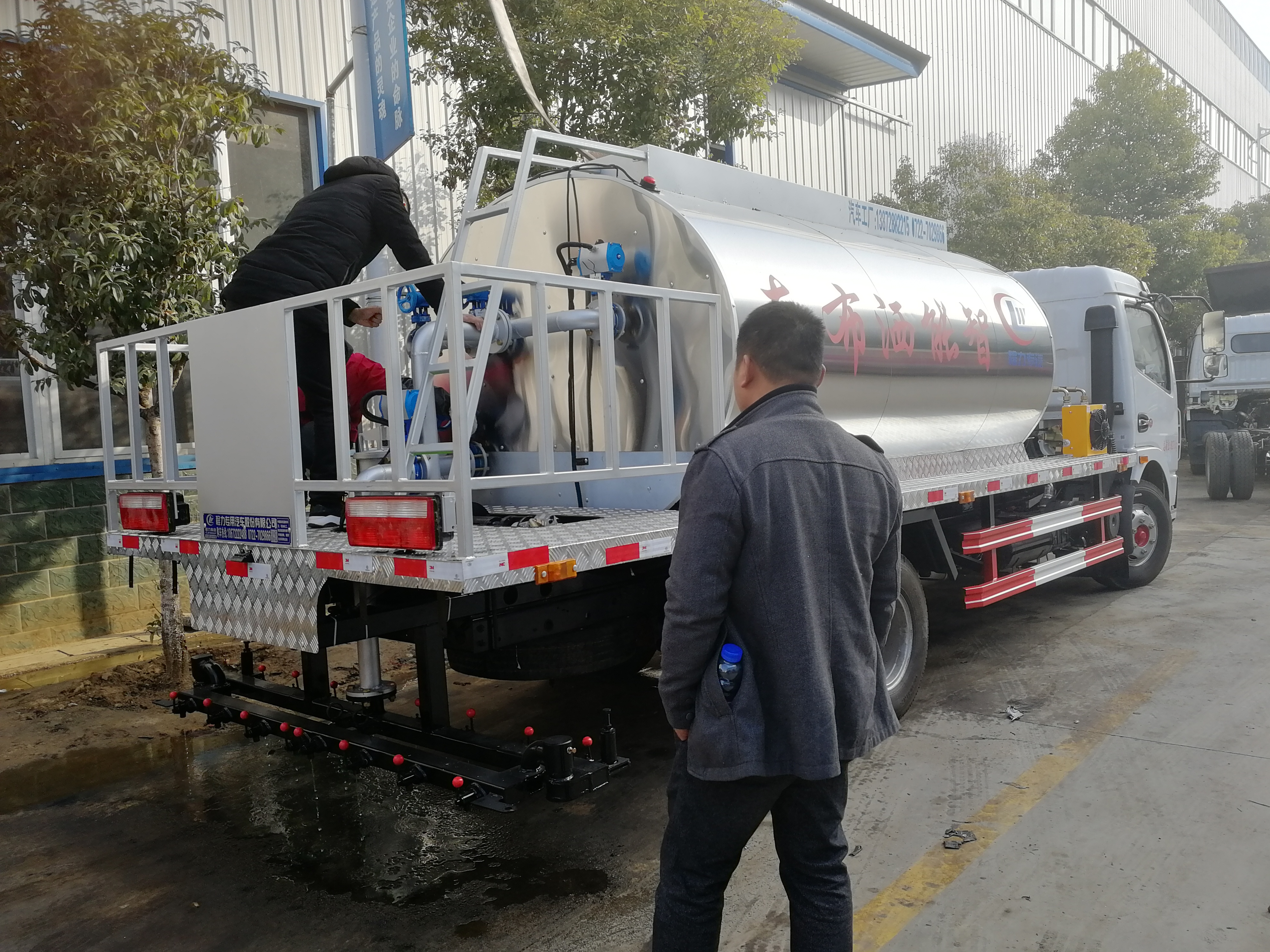 經過湖北程力瀝青灑布車車間技術人員的講解如何操作和使用需要注意事項都明白后高高興興提車回家賺錢了,祝福司機一路順風。
