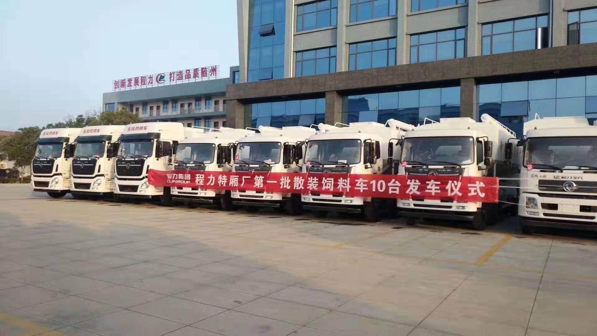 武漢軍運會期間湖北程力散裝飼料車批量發車