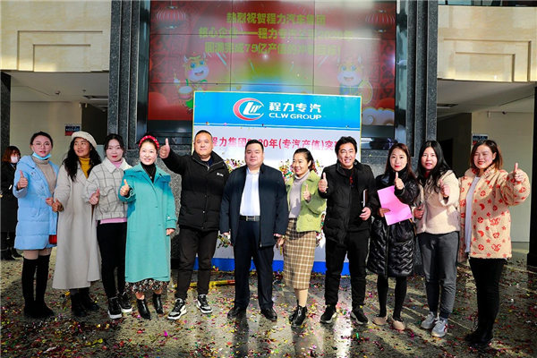集團公司高層組織在家的主要領(lǐng)導(dǎo),以及各部門的中層干部及負(fù)責(zé)人,各直屬廠、專業(yè)廠、集團成員廠總經(jīng)理,戶主經(jīng)理與各銷售精英團隊負(fù)責(zé)人,程力汽車集團簽約網(wǎng)紅共計200余人,在程力總部八號樓迎賓大廳共同見證了超額完成75億專汽產(chǎn)值的祝賀儀式。