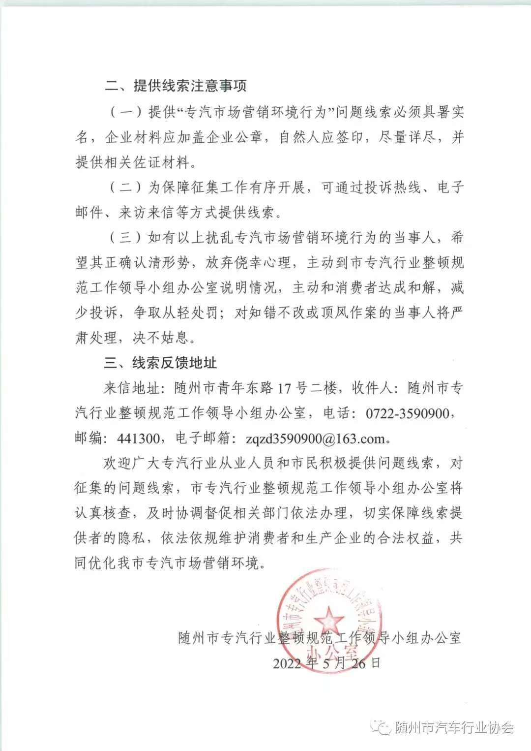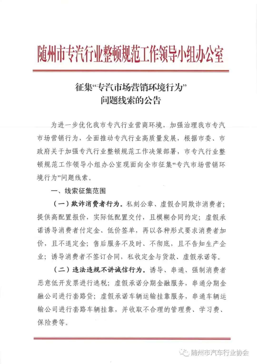 隨州市汽車(chē)行業(yè)協(xié)會(huì)關(guān)于整頓“隨州專汽市場(chǎng)營(yíng)銷(xiāo)環(huán)境行為”銷(xiāo)售欺詐投訴舉報(bào)公告