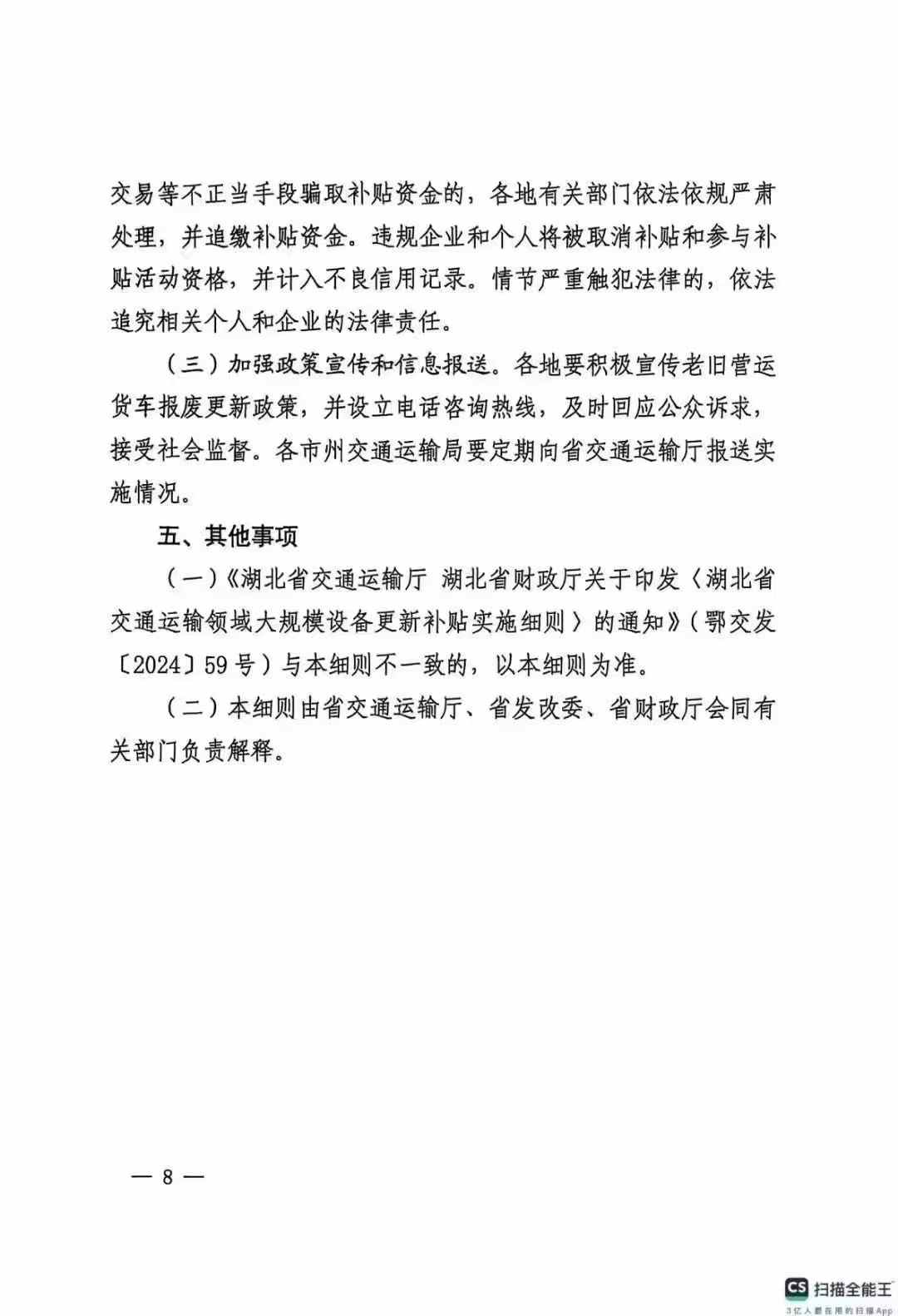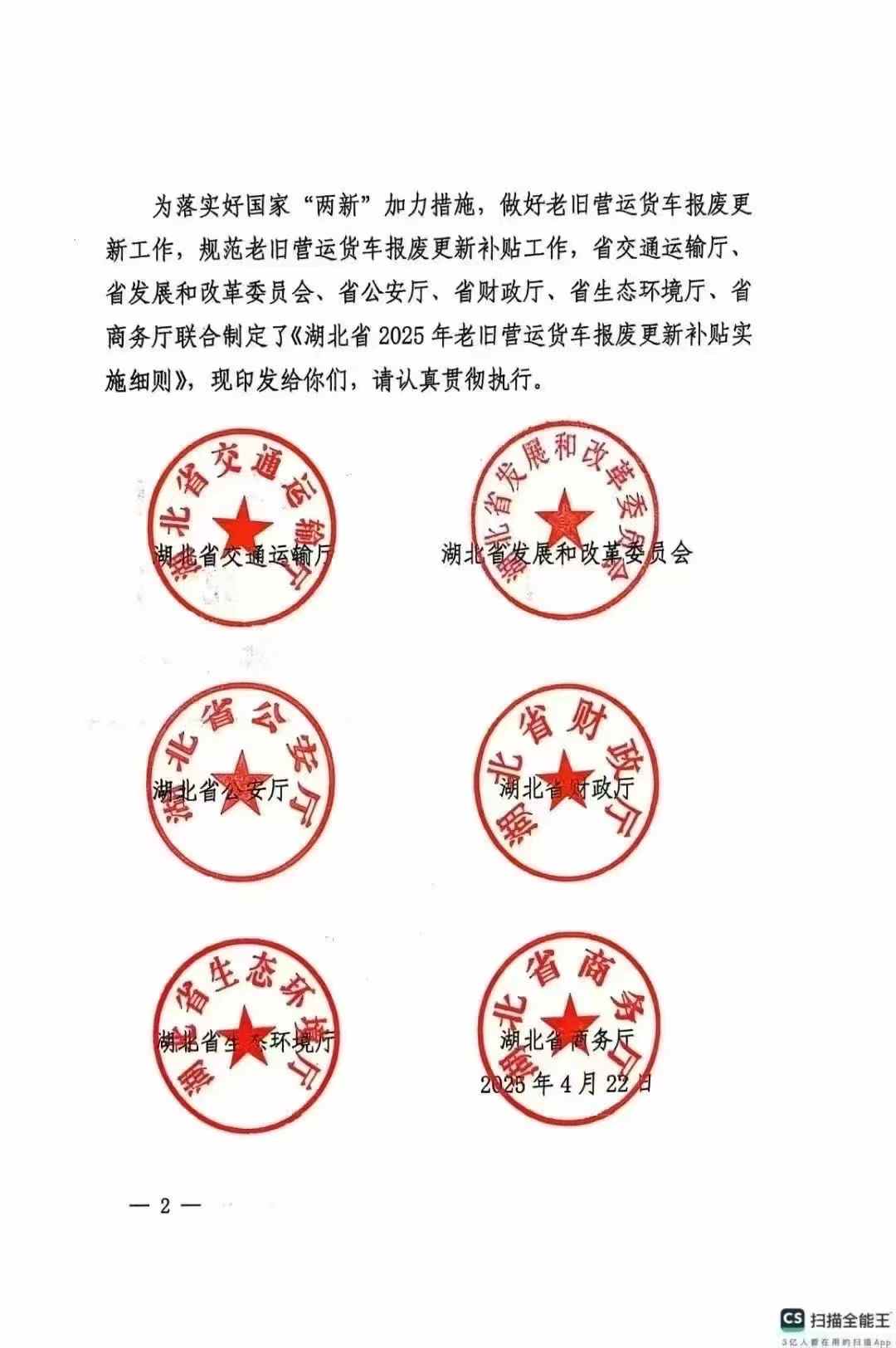 經常接到用戶電話首先會問現在購買程力專用汽車有沒有國家補貼政策,國家以舊換新政策以出臺。需要購車的老板抓緊時間!別的省份以當地補貼政策為準,不清楚的可以打電話到當地車輛報廢中心咨詢,不知道車輛報廢中心電話的,可以先打市長熱線詢問電話。需報廢的車輛必需為營運車輛(顧名思義就是要有營運證)下面是湖北省2025年老舊運營貨車報廢以舊換新政策補貼實施細則通知: