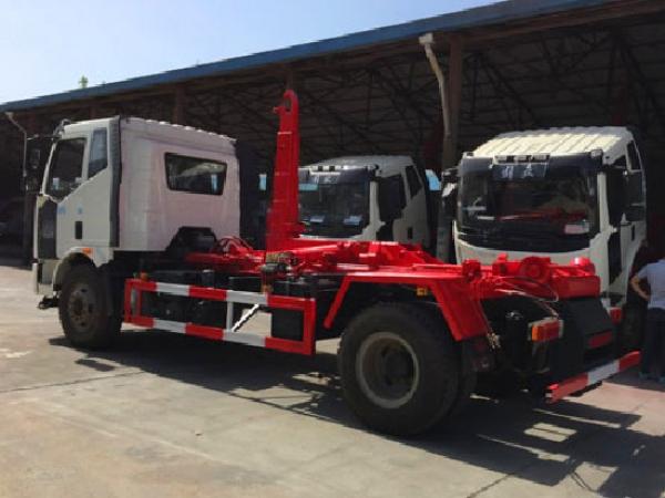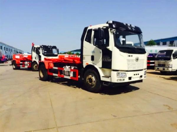 國(guó)六解放J6勾臂垃圾車(chē)(車(chē)廂可卸式垃圾車(chē))底盤(pán)配置:采用一汽解放J6底盤(pán),底盤(pán)型號(hào)為:CA1180P62K1L2A1E6Z,軸距4500,發(fā)動(dòng)機(jī)配備大柴CA4DK1-22E6型國(guó)六柴油發(fā)動(dòng)機(jī),功率165kw,220匹馬力,8檔變速箱,378后橋,10.00R20鋼絲胎,原廠自動(dòng)空調(diào),原廠ABS,大燈調(diào)節(jié)系統(tǒng),剎車(chē)間隙自動(dòng)調(diào)整臂,防飛濺裝置,及轉(zhuǎn)向爆鳴器;,陜齒8檔變速箱,378后橋,9.00R20鋼絲胎,原廠自動(dòng)空調(diào),原廠ABS,大燈調(diào)節(jié)系統(tǒng),剎車(chē)間隙自動(dòng)調(diào)整臂,防飛濺裝置,及轉(zhuǎn)向爆鳴器。 國(guó)六解放J6勾臂垃圾車(chē)(車(chē)廂可卸式垃圾車(chē))上裝配置:解放J6,10-14方方勾臂式垃圾車(chē),標(biāo)配可配合10-15方垃圾箱使用,也可配合同級(jí)別移動(dòng)壓縮式垃圾箱使用,勾臂采用高強(qiáng)度優(yōu)質(zhì)錳鋼,雙層套臂,瀘州液壓油缸,副車(chē)架采用16號(hào)低合金槽鋼、20號(hào)方管與8mm、5mm、4mm、16Mn鋼板焊接而成,翻轉(zhuǎn)架與活動(dòng)勾臂垃圾車(chē)動(dòng)作設(shè)計(jì)合理可靠,帶有滾筒后支腿,實(shí)現(xiàn)拉箱、鎖緊、放箱和自卸操作簡(jiǎn)單方便,控制方式為駕駛室智能控制,也可根據(jù)用戶(hù)需要選裝駕駛室外傳統(tǒng)操作桿進(jìn)行控制。