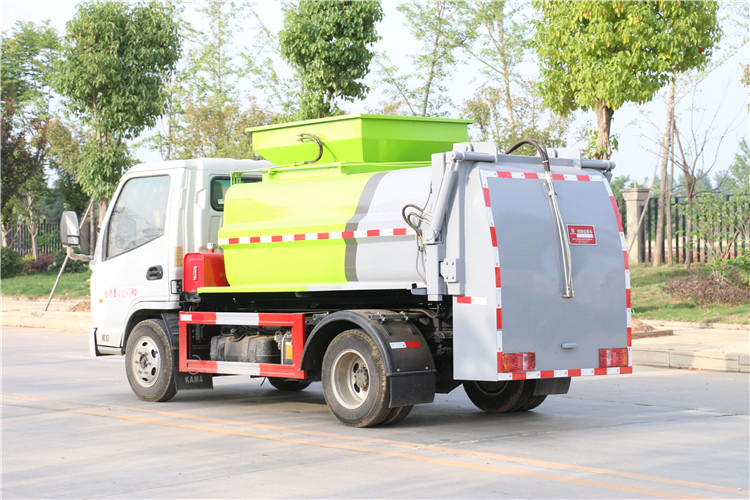 凱馬餐廚垃圾車又稱廚余垃圾車或者泔水車,是鳙魚收集和運輸生活垃圾,食品垃圾(泔水)及城市淤泥的車輛,具有自裝,自卸,固液分離,運輸垃圾車自動化程度高,密封性好,操作簡單,無污水泄露和異味的散發等特點 國六凱馬藍牌餐廚垃圾車配置:常用整車型號:CLW5040TCAKL6|軸距2800,或者3300濰柴130馬力,容積3立方。固液分離、全推板、加熱裝置可選,實車公告,環保已下發,上戶無憂 罐體容積3方,采用4mm碳鋼制作,方形罐體,罐體與后蓋上部采用鉸鏈連接,后蓋可利用液壓油缸打開卸料;罐體右側前部裝有掛桶提升機構裝卸桶裝垃圾,罐體底部安裝液壓油缸實現罐體舉升自卸。后蓋采用液壓開啟、鎖緊。操作方式為室外手動液壓操作。凱馬3方藍牌餐廚垃圾車底盤配置:濰柴發動機,六檔變速箱,2800軸距,1046后橋,6.50R16鋼絲胎,新款五十鈴1680白色單排可翻轉駕駛室 我公司生產的凱馬餐廚垃圾車優勢: 其外觀造型美觀大方。垃圾箱橫向截面為圓柱框架、縱向截面為梯形框架,兩側及頂面均為圓弧造型,美觀大方,裝載能力強。且能實現箱內餐廚垃圾油水的初步分離和垃圾減容,并配備有大容量污水箱,垃圾箱與后門總成之間密封性好。垃圾箱與后門總成之間采用特制型橡膠條密封,密封性好,了二次污染?煽啃耘c安全性。采用電、液聯合控制,并設置了安全保護開關,保證了各機構動作準確、可靠。發動機功率輸出自動控制。發動機功率輸出實現全自動控制,非作業時,發動機怠速狀態,作業時,發動機自動加速,滿足作業功率的要求。避免了功率損耗和系統發熱,耗油降低,經濟性好。 機動性強。作業罐體和作業平臺利用底盤承載,任何需要對泔水進行處理的地方,只需一個司機一個作業工人就能隨叫隨到。其機動作業能力好。 湖北程力國六凱馬3方藍牌餐廚垃圾車程力威牌CLW5040TCAKL6型餐廚垃圾車CLW5040TCAK6型餐廚垃圾車圖片價格: