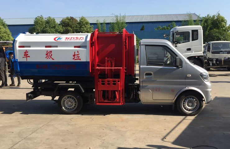 東風(fēng)小康3方掛桶式垃圾車底盤配置:采用原裝東風(fēng)DXK1031TK5JH8型號(hào)底盤,采用重慶小康動(dòng)力111馬力國(guó)六發(fā)動(dòng)機(jī),五檔變速箱,2850mm軸距,承載力更強(qiáng),165R14輪胎帶取力器,帶掛桶提升傾倒機(jī)構(gòu),廂體液壓舉升自卸,小型垃圾收集車,機(jī)動(dòng)性好。 東風(fēng)小康3方掛桶式垃圾車上裝配置:是全密封式垃圾箱體,垃圾廂容積3立方,采用優(yōu)質(zhì)武鋼產(chǎn)碳鋼板焊接制作而成,邊板彎折強(qiáng)化,箱體右側(cè)配液壓掛桶提升機(jī),可掛國(guó)標(biāo)120升+240升塑料垃圾桶,提升速度快,穩(wěn)定性高,尾門彈簧鎖扣橡膠密封條,向內(nèi)設(shè)污水欄,箱體雙缸液壓自卸,多路閥手柄操控。
