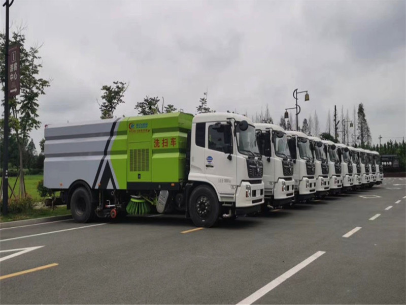 洗掃車集掃路車、灑水車和高壓清洗車功能于一體,具備路面清掃、路面洗刷、高壓清洗、低壓沖洗、路緣石洗刷、垃圾收集、污水回收、噴霧降塵和道路隔離墻清洗、小廣告清洗等多種作業功能。