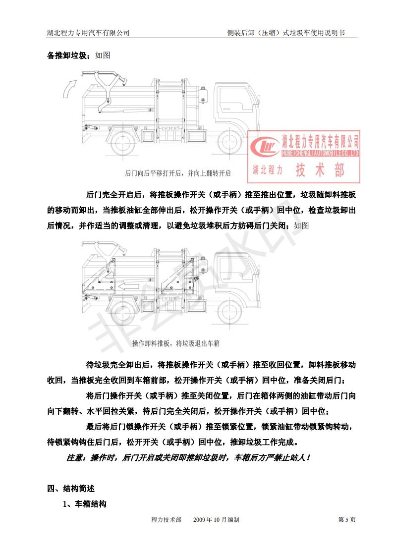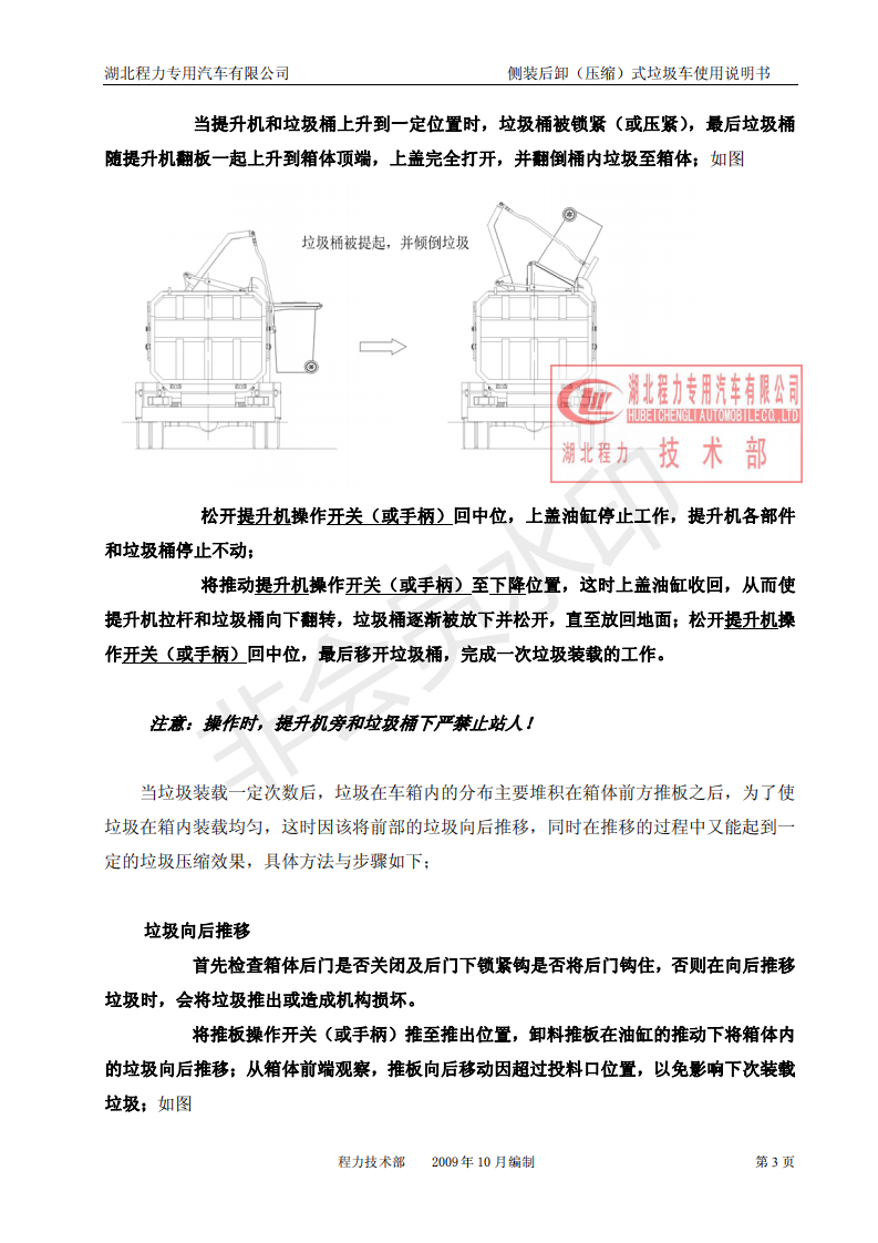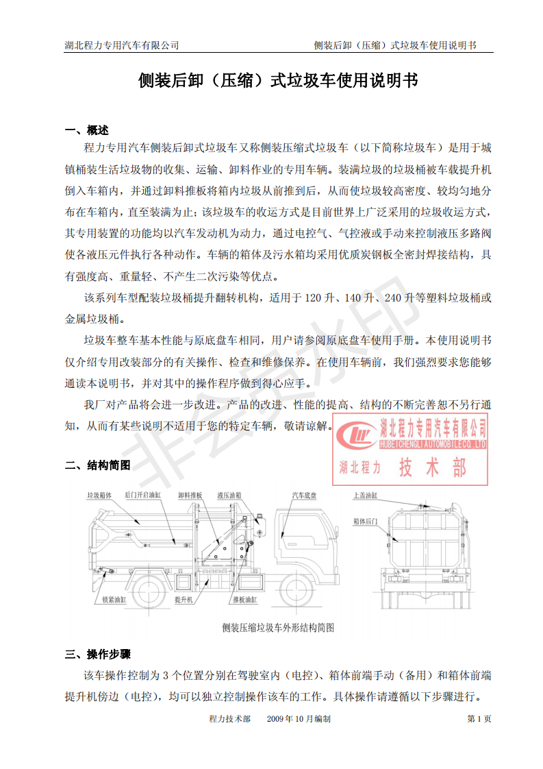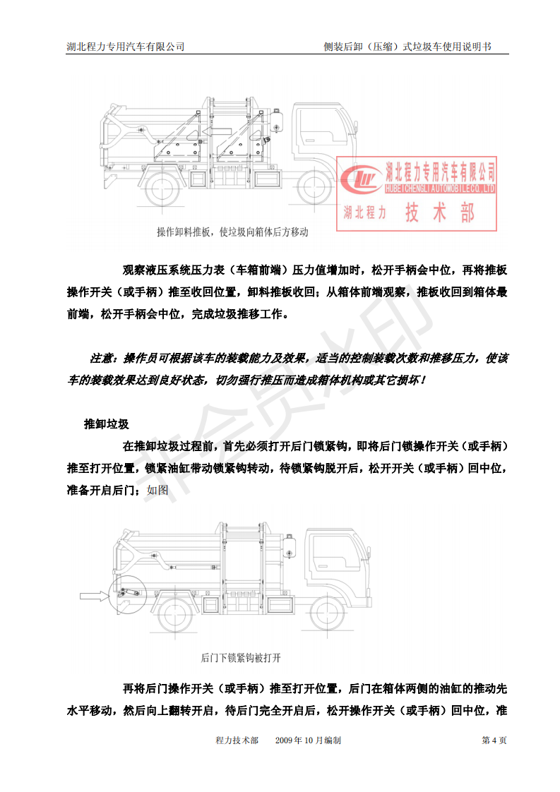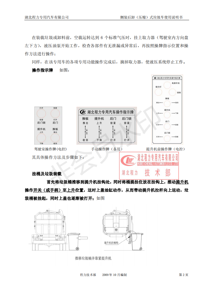 湖北程力側裝后卸(壓縮)式掛桶垃圾車使用說明書