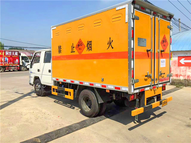 江鈴雙排防爆車貨箱尺寸:3260×1810×1750mm,準載質量:1270KG,總質量:4495KG,上藍牌湖北程力生產的防爆車均采用國際先進生產工藝,外形美觀,經久耐用。廂體采用可產生靜電屏蔽效應的冷扎鋼板,中間附以阻燃泡沫,內襯三合板,內飾高強度鋁合金,四層現代工藝復合而成。廂內安裝固定運載物的臥環,防燃煙霧報警器,門上安裝防盜報警器,前置防撞防靜電膠皮。底部是防爆鋼板上墊防靜電膠皮。根據不同配置需求,防爆車價格有所浮動,具體參數配置請致電湖北程力銷售部熱線0722-7209866