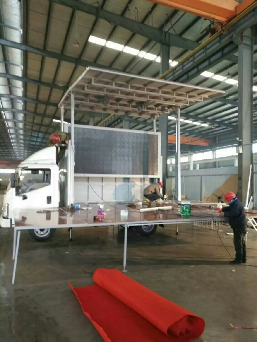 第 三步:安排生產:我公司根據合同要求,安排廣告宣傳車車間生產。