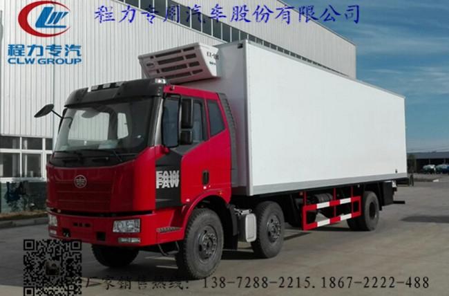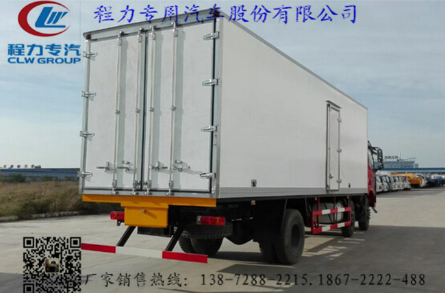 2.上裝配置:冷藏廂體內部有效尺寸:長7.7~8.7米×寬2.35米×高2.5米,廂體蒙皮采用內外玻璃鋼,