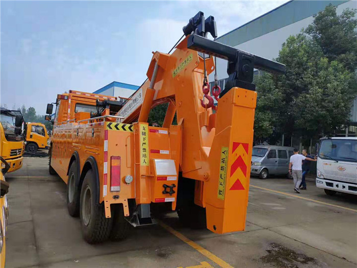 湖北程力國六陜汽德龍后雙橋重型清障車程力威牌CLW5322TQZS6型清障車配置: 陜汽德龍后雙橋拖吊聯體一拖一清障車配置: 采用濰柴336馬力,陜齒12擋變速箱,空調,斷氣剎,ABS,電動門窗,中控鎖,1100R20鋼絲胎。 20噸聯體式上裝,進口閥,二節式六邊型吊臂,三節托臂,分體式車廂,雙側聯動操作裝置,,兩個十噸液壓卷揚,四十五米鋼絲繩,直徑18MM,配四套鋼叉,一套拖叉套,一套鋼板吊耳拖叉,一套抱胎裝置,輔助燈一套,輔助氣管總成一套,捆綁鏈條兩根; 整車出具:底盤合格證、整車合格證、全國統一機動車上戶發票、隨車工具、車輛質保手冊、全國服務站點目錄等。 湖北程力國六陜汽德龍后雙橋重型清障車程力威牌CLW5322TQZS6型清障車多方位圖片: