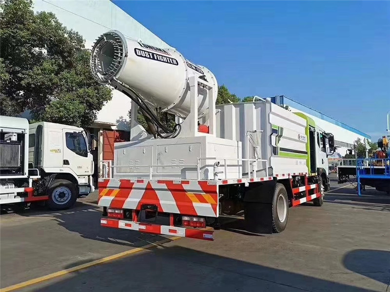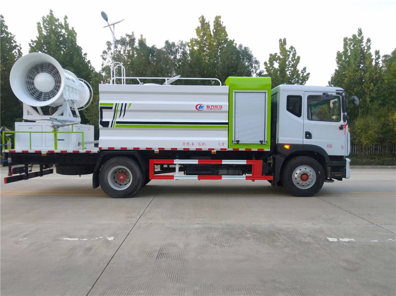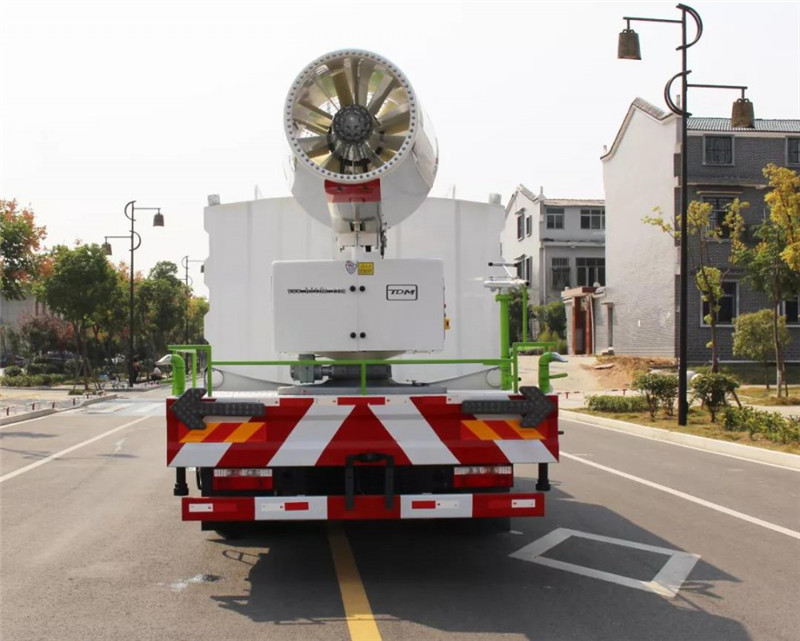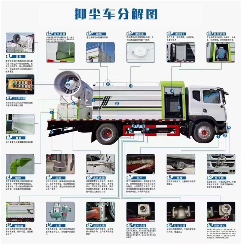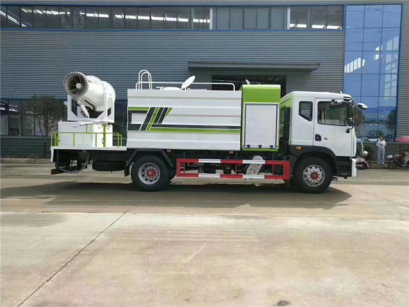 底盤配置:采用國(guó)六東風(fēng)新款多利卡D9系列底盤生產(chǎn),軸距4500mm,底盤發(fā)動(dòng)機(jī)為康明斯230馬力,295真空胎,東風(fēng)6檔變速箱,國(guó)六排放標(biāo)準(zhǔn),罐體容積:10立方,罐體鋼板采用Q235碳鋼鋼板,采用方形瓦楞設(shè)計(jì),外觀大氣靚麗,后工作平臺(tái)加裝高效率車載式風(fēng)送噴霧機(jī),噴藥炮霧化效果好,可遠(yuǎn)程噴霧,東風(fēng)多利卡D9抑塵車帶前沖后灑、側(cè)噴、平臺(tái)高炮、自流閥及消防接頭各1個(gè)、標(biāo)配億豐泵或金龍泵,可選裝50-100米噴霧機(jī)。 上裝配置:罐體容積10立方,罐體為方形罐,罐體內(nèi)部做防腐,主管路鍍鋅,帶前部沖洗路面噴灑裝置、后部扇形降塵噴灑裝置,兩側(cè)面噴灑裝置,帶后部工作平臺(tái)、平臺(tái)上安裝綠化灑水炮(炮噴射形狀可調(diào)),可調(diào)直沖狀、大雨、中雨、毛毛雨,可連續(xù)調(diào)節(jié),采用中聯(lián)唯佳大流量水泵,消防接口可自流,音樂喇叭,50-100米噴霧機(jī)組。 噴霧機(jī)配置:TDM-M08型,可無(wú)線操作,及手動(dòng)操作。根據(jù)需求選配的霧炮機(jī)霧化距離在60-120米不等(靜風(fēng)室內(nèi)距離),實(shí)際射程:(霧化射程會(huì)受濕度、溫度、風(fēng)速等各方面天氣因素的影響,另外天氣干燥地區(qū)一部分在空中被蒸發(fā)掉)。CLW-100型60米,副發(fā)電機(jī)組功率50(Kw),風(fēng)機(jī)功率15(Kw),不銹鋼多級(jí)離心泵功率5.5(Kw)。100米無(wú)線操作,霧化距離60米(靜風(fēng)室內(nèi)距離)實(shí)際射程:(霧化射程會(huì)受濕度、溫度、風(fēng)速等各方面天氣因素的影響,另外天氣干燥地區(qū)一部分在空中被蒸發(fā)掉)。 湖北程力國(guó)六東風(fēng)D9方罐抑塵車程力威牌CLW5180TDYD6型多功能抑塵車圖片價(jià)格: